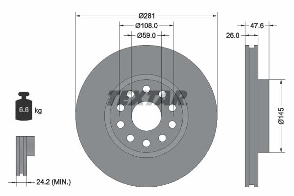 1 X Front Brake Disc Vented 92093900 Textar 281 mm Diameter