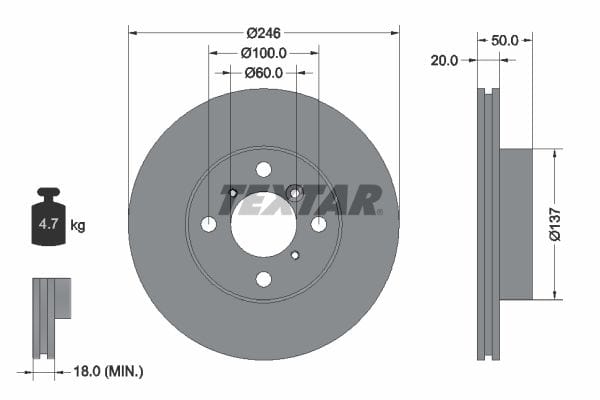 1 X Front Brake Disc Vented 92104500 Textar 246 mm Diameter