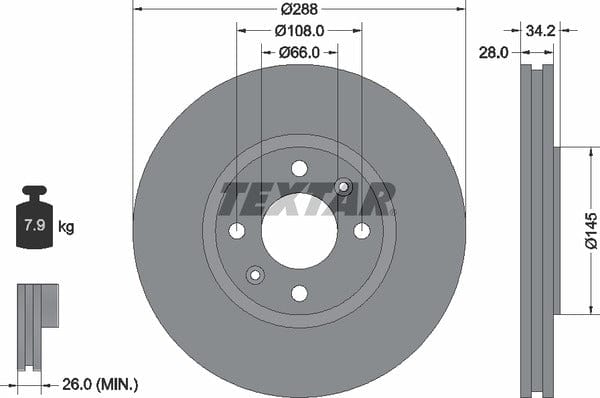 1 X Front Brake Disc Vented 92107800 Textar 288 mm Diameter