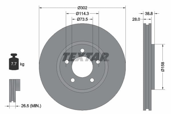 1 X Front Brake Disc Vented 92108200 Textar 302 mm Diameter