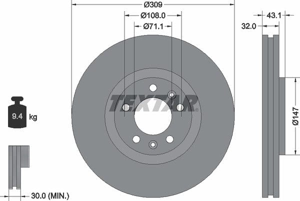 1 X Front Brake Disc Vented 92111900 Textar 309 mm Diameter