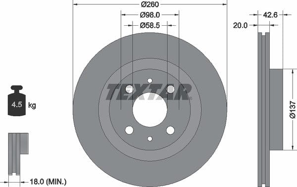 1 X Front Brake Disc Vented 92112100 Textar 260 mm Diameter