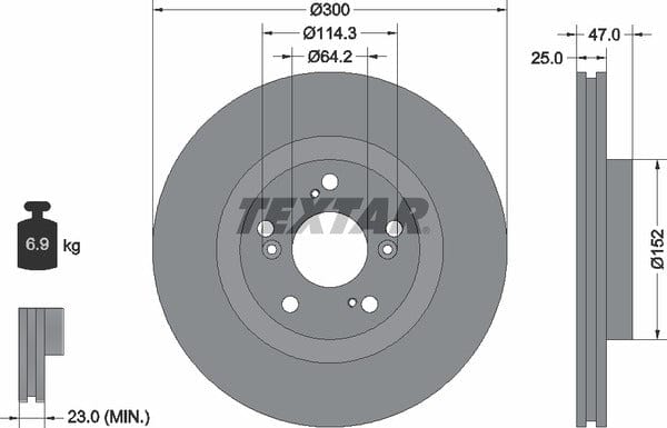 1 X Front Brake Disc Vented 92125000 Textar 300 mm Diameter