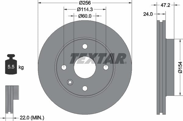 1 X Front Brake Disc Vented 92133500 Textar 256 mm Diameter