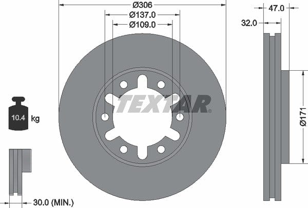 1 X Front Brake Disc Vented 92138300 Textar 306 mm Diameter