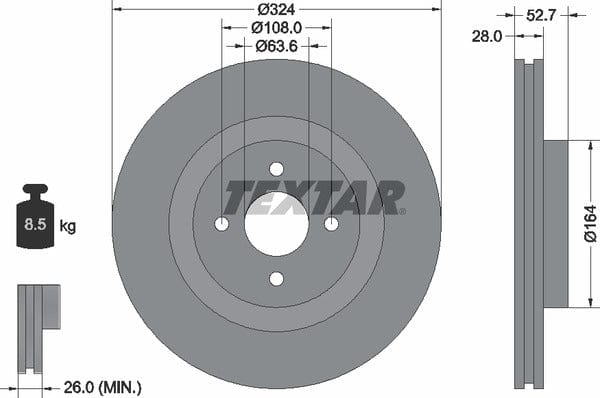 1 X Front Brake Disc Vented 92146400 Textar 324 mm Diameter