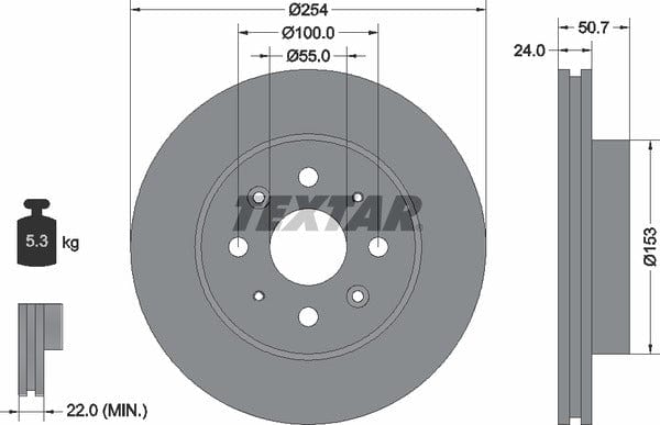 1 X Front Brake Disc Vented 92147000 Textar 254 mm Diameter