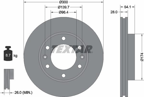 1 X Front Brake Disc Vented 92164500 Textar 300 mm Diameter