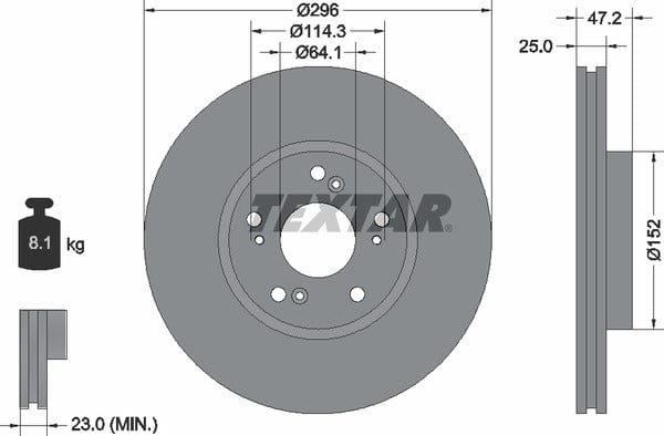 1 X Front Brake Disc Vented 92195000 Textar 296 mm Diameter