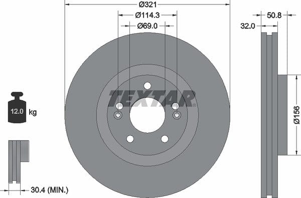 1 X Front Brake Disc Vented 92221700 Textar 321 mm Diameter