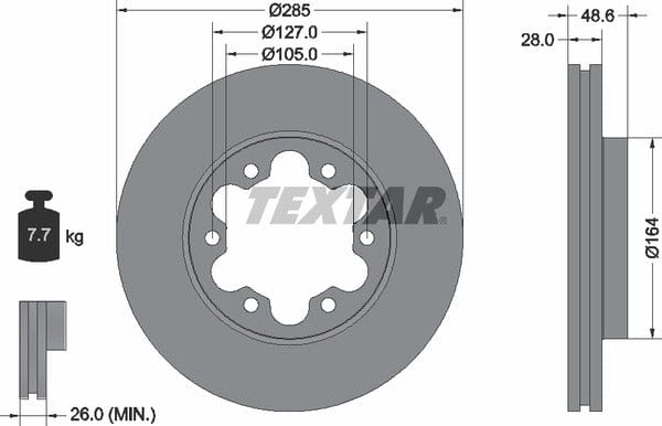 1 X Front Brake Disc Vented 92234900 Textar 285 mm Diameter