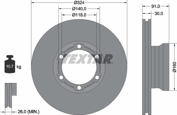 1 X Front Brake Disc Vented 93087600 Textar 324 mm Diameter