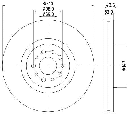 1 X Brake Disc Vented Front / PCD20841 DON 310 mm Diameter