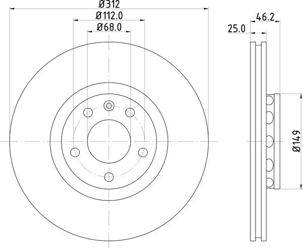 1 X Brake Disc Vented Front PCD10672 DON 312 mm Diameter