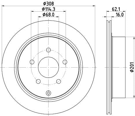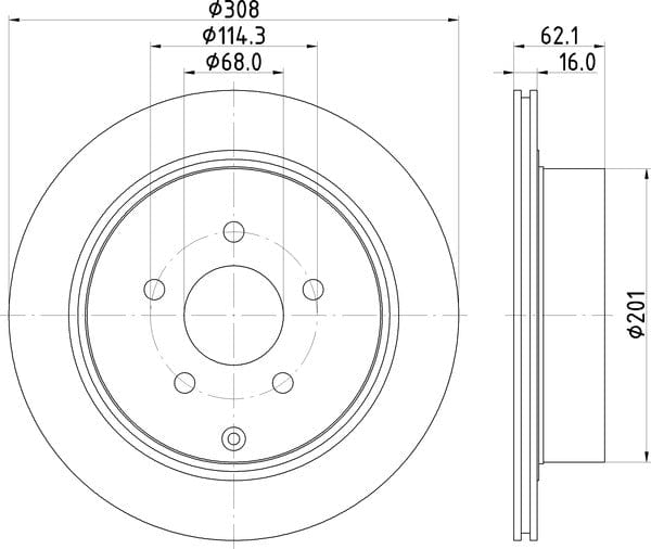 1 X Brake Disc Vented Rear PCD12842 DON 308 mm Diameter