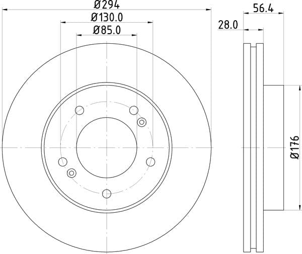 1 X Brake Disc Vented Front PCD13002 DON 294 mm Diameter