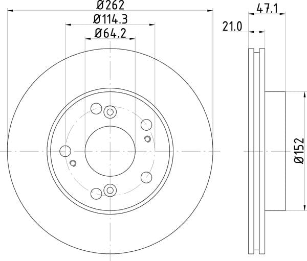 1 X Brake Disc Vented Front PCD13552 DON 262 mm Diameter