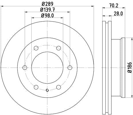 1 X Brake Disc Vented Front PCD13652 DON 289 mm Diameter