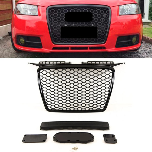 Fits Audi A3 2004-2008 Main Grille Gloss Black With Emblem Holder Rs Look