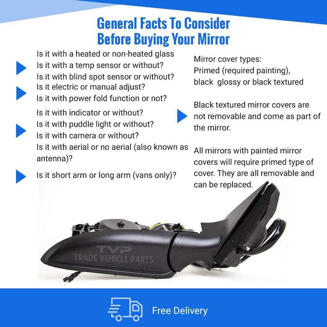 Fits Audi A3/S3 5Door 2008-2010 Door Wing Mirror Heated Electric With Lamp 8Pin Primed Driver Side