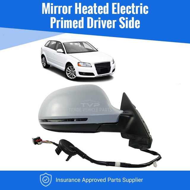 Audi A3/S3 5Door 2008-2010 Door Wing Mirror Heated Electric With Lamp 8Pin Primed Driver Side