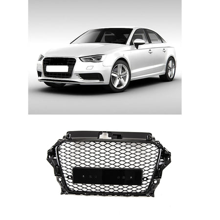 Audi A3 S3 8V 2012-2016 Front Bumper Main Grille Gloss Black RS Style Honeycomb