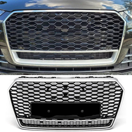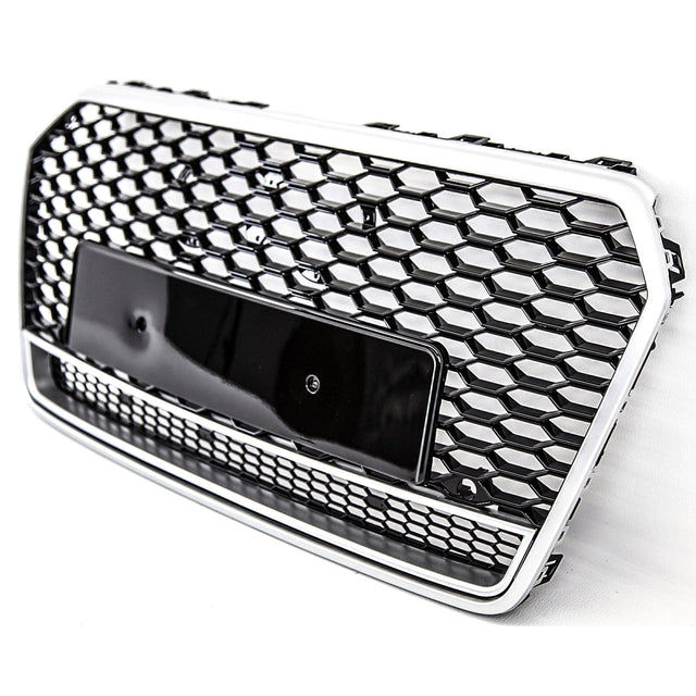 Audi A7 S7 2014-2018 Front Bumper Grille Honeycomb RS7 Style Gloss Black With Silver Frame