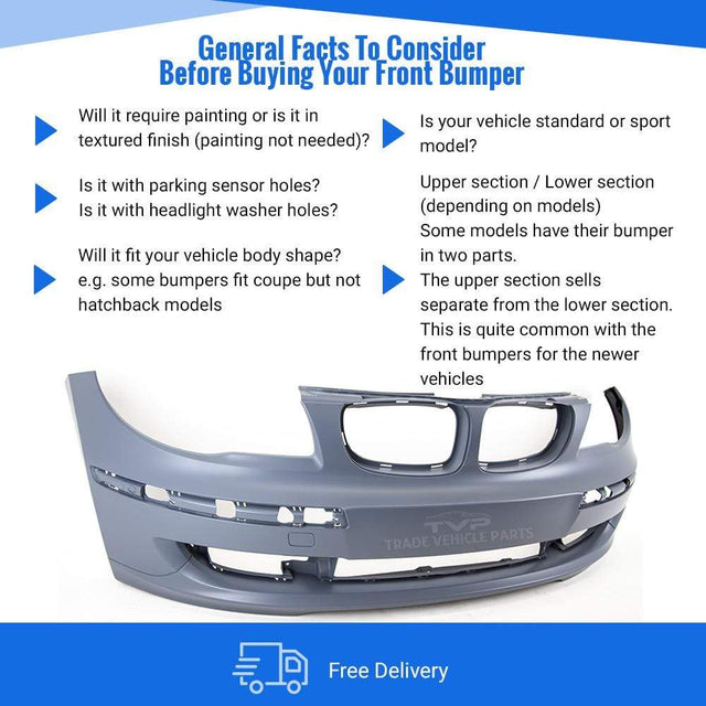 Fits BMW 1 Series E87 E81 2007-2011 Front Bumper Primed No Washer Holes