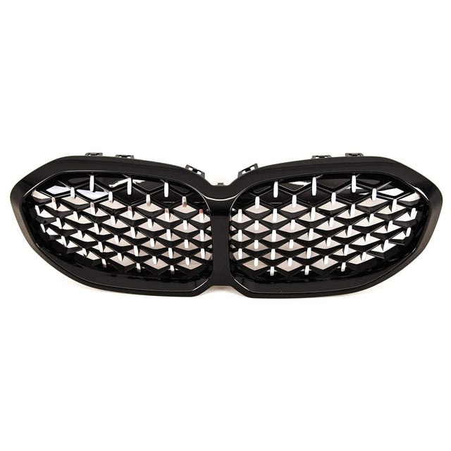 Fits BMW 1 Series F40 2019- Front Kidney Grilles Diamond Style Gloss Black & Chrome