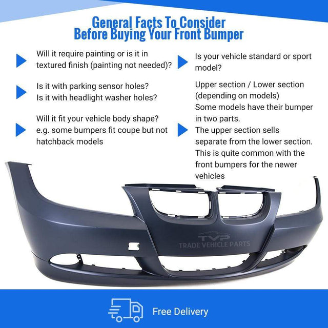 Fits BMW 3 E90 E91 Estate & Saloon 2005-2008 Front Bumper Primed No Pdc Or Washer Holes