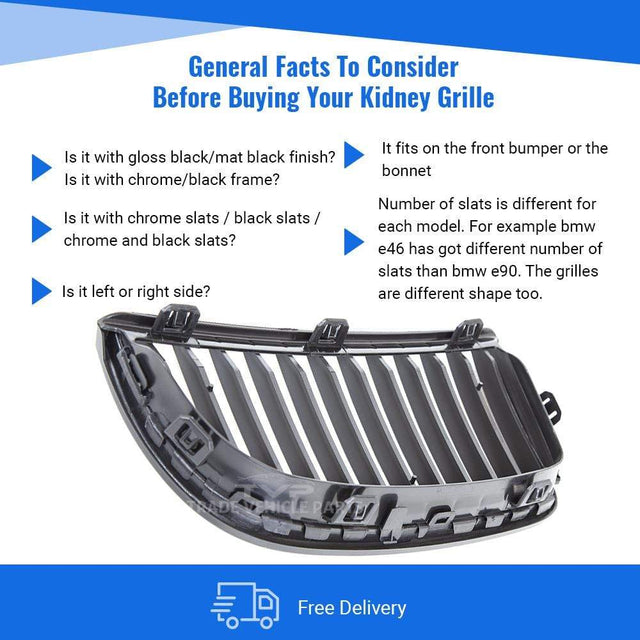 Fits BMW 3 E90 E91 Saloon & Estate 2005-2008 Kidney Grille Passenger Side All Black