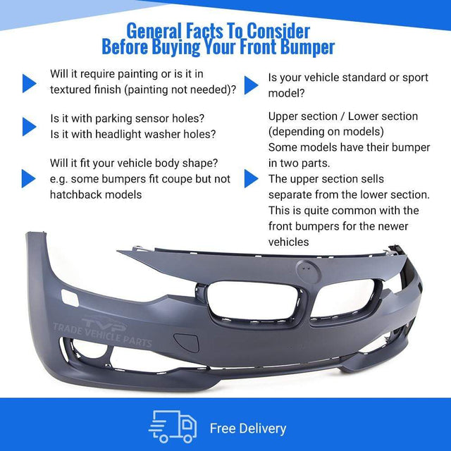 Fits BMW 3 F30 2012-2015 Front Bumper Primed No Pdc, With Washer Hole