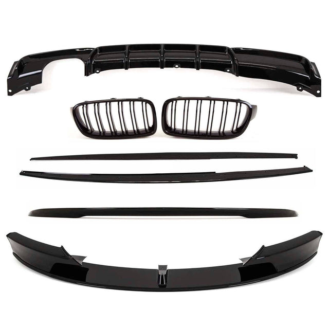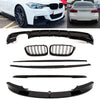 Fits BMW 3 Series F30 2012-2018 Aero Body Kit Front Splitter Rear Diffuser Boot Spoiler Kidney Grilles & Side Skirts M Performance Style Gloss Black