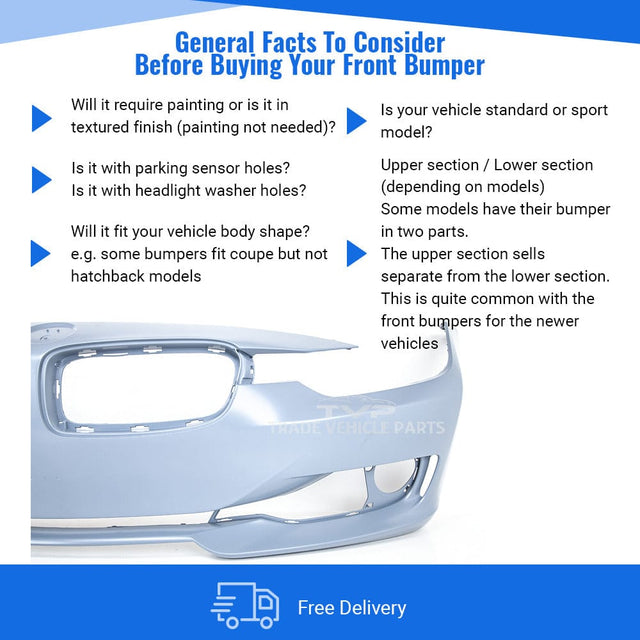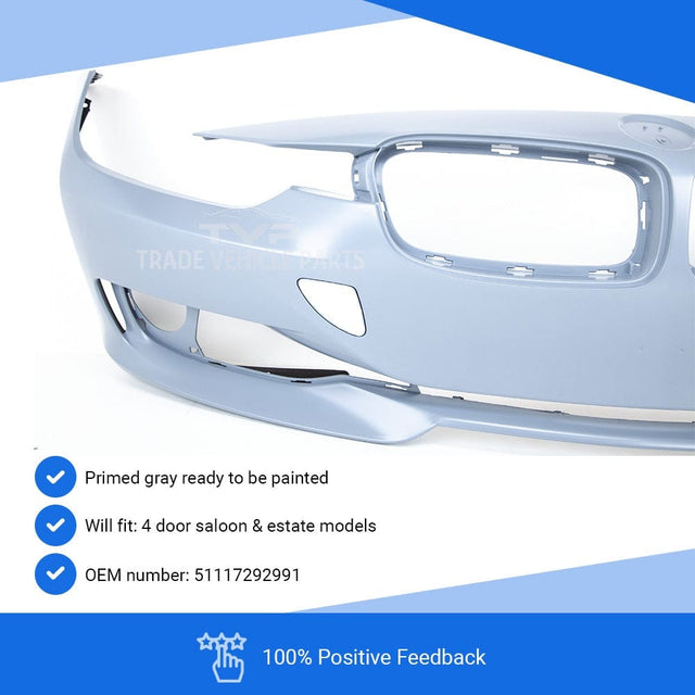 Fits BMW 3 Series F30/31 Pre-LCI 2012-2015 Front Bumper Primed No Pdc Or Washer Holes