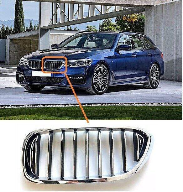 Fits BMW 5 Series G31 2017- Kidney Grille All Chrome Passenger Side