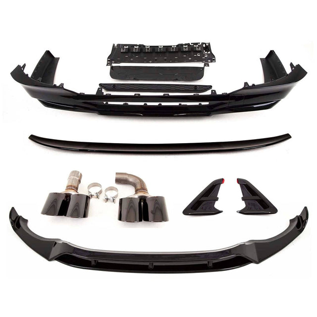 - Package includes- 1 x Front Splitter, 1 x Rear Diffuser Quad Exhaust, 1 x Pair Aero Wings, 1 x Roof Spoiler, 1 x Pair Exhaust Tips