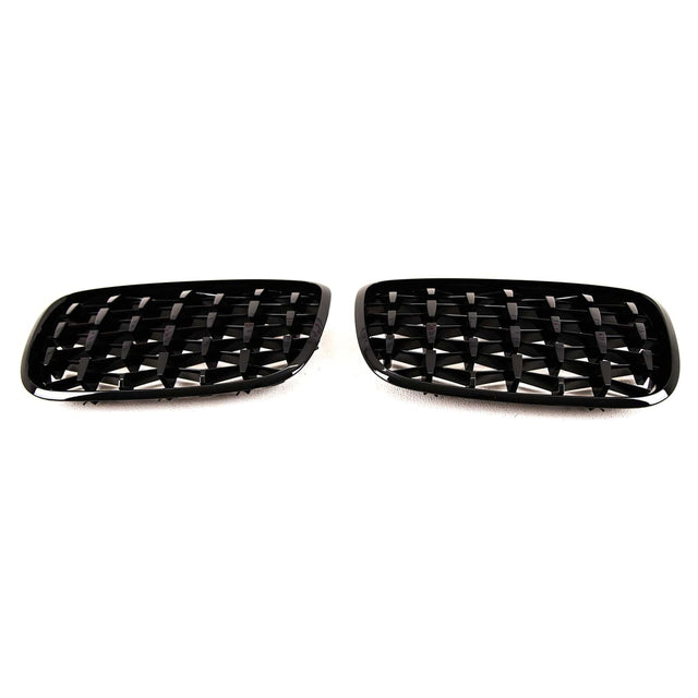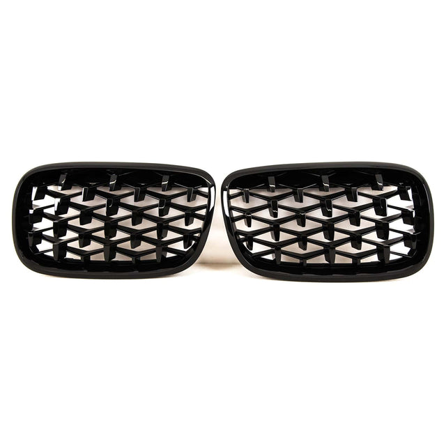 BMW X5 E70 X6 E71 2007-2014 Front Kidney Grilles Diamond Meteor Style Gloss Black