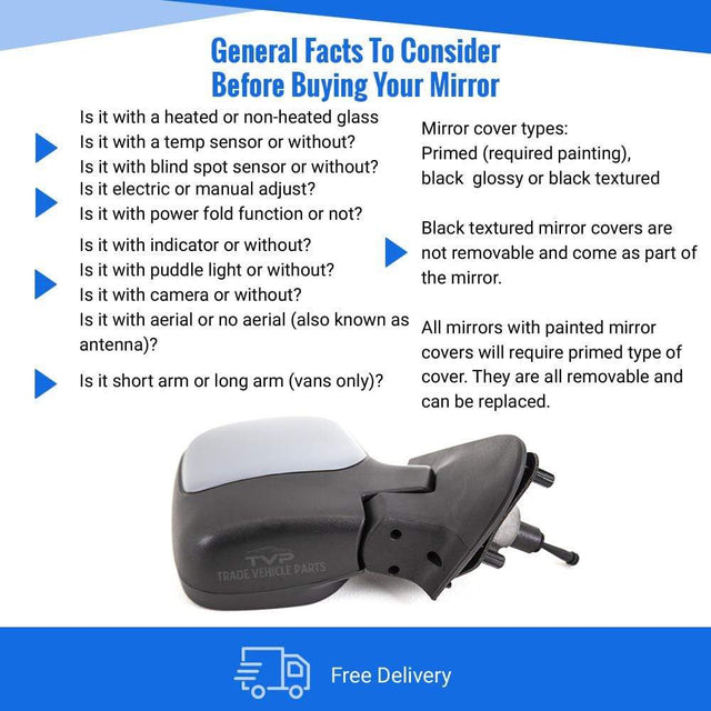 Fits Citroen Berlingo 1998-2008 Door Wing Mirror Manual Primed Driver Side