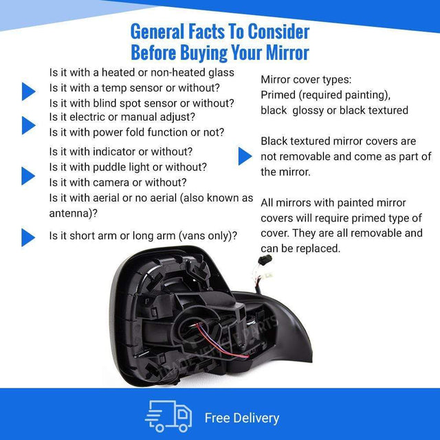 Citroen Berlingo 2012-2018 Door Wing Mirror E/H Power Fold Primed Driver Side