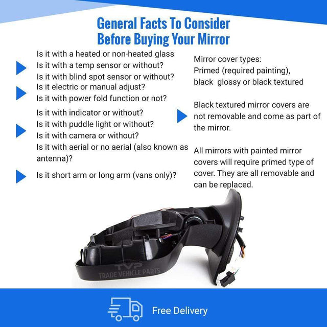 Fits Citroen Berlingo 2012-2018 Door Wing Mirror E/H Power Fold Primed Passenger Side