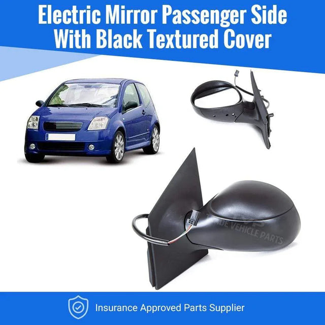 Fits Citroen C2 2003-2010 Door Wing Mirror Electric-Black Textured Passenger Side