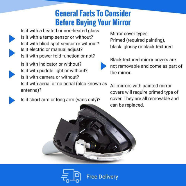Fits Citroen C4 Picasso 2013- Door Wing Mirror Electric Heated Powerfold Primed Cover W/ Indicator & Foot Light Passenger Side