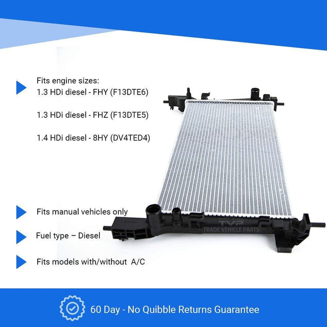 Fits Citroen Nemo 2008-2018 Radiator (1.3 Hdi, 1.4 Hdi)(Manual) (With/Without Ac)
