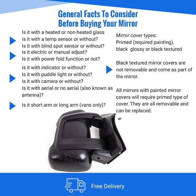 Fits Citroen Relay 2006-2014 Door Wing Mirror Manual Black W/Indicator Driver Side
