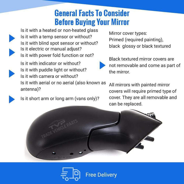 Fits Citroen Xsara Picasso 2000-2004 Door Wing Mirror Heated-Electric-Black Textured Driver Side