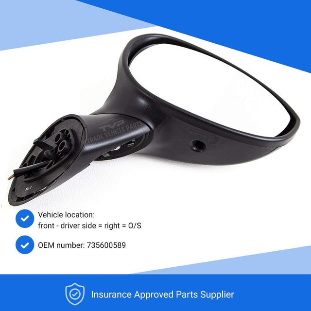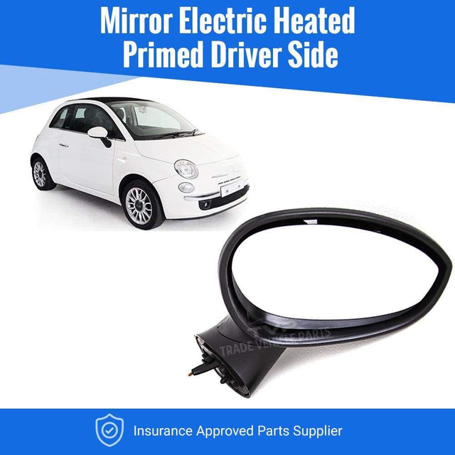Fits Fiat 500 2007-2015 Door Wing Mirror Electric Heated Primed Driver Side All Models Incl Conv