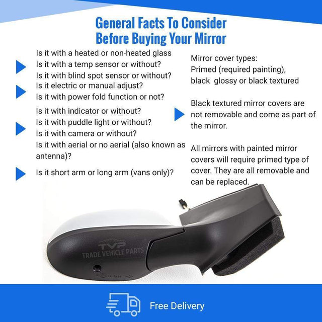 Fits Fiat Bravo 2007- 2014 Door Wing Mirror Electric Heated Primed Cover Driver Side