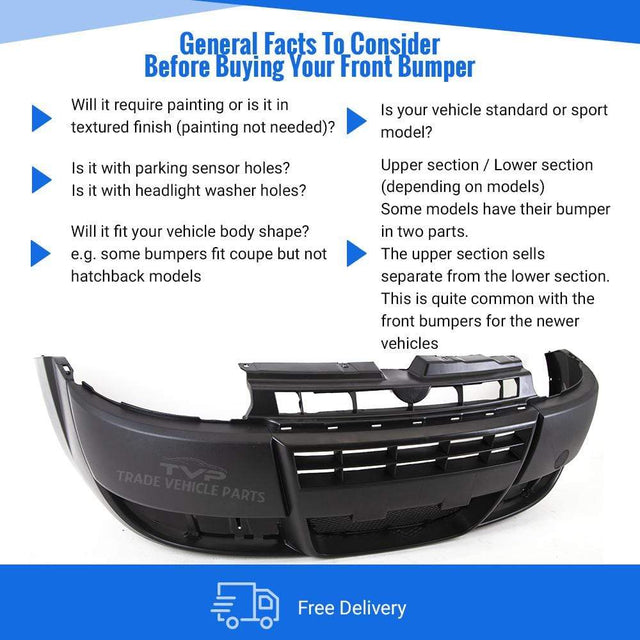 Fits Fiat Doblo 2006-2010 Front Bumper Black No Pdc Or Washer Holes