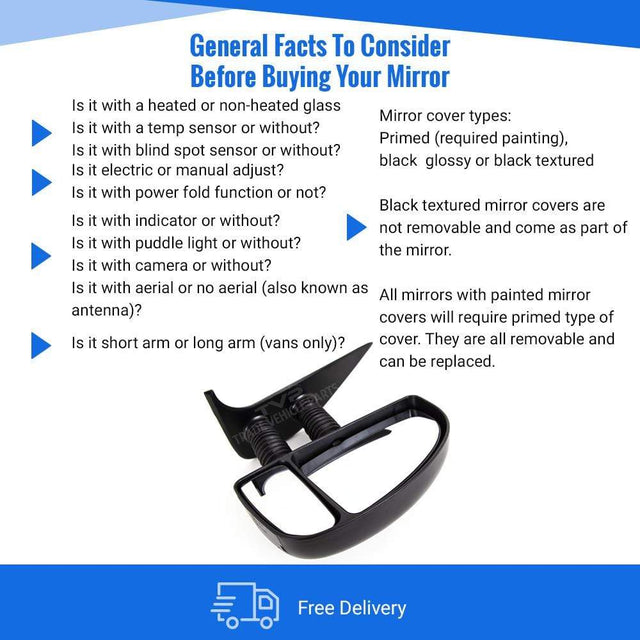 Fits Fiat Ducato 1999-2006 Door Wing Mirror Manual Black Long Arm Driver Side