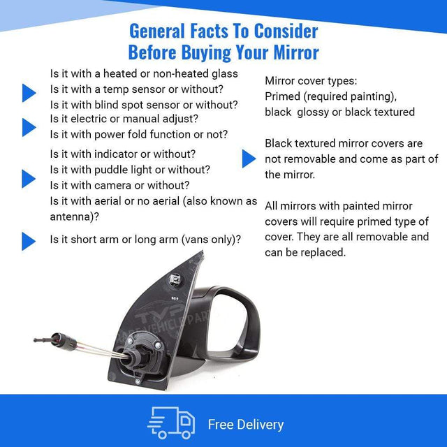 Fits Fiat Panda 2010-2012 Door Wing Mirror Manual With Black Cover Driver Side